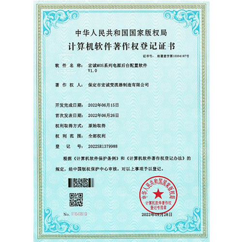計算機軟件注冊權(quán)登記證書——整流電源開放式測試平臺V1.0